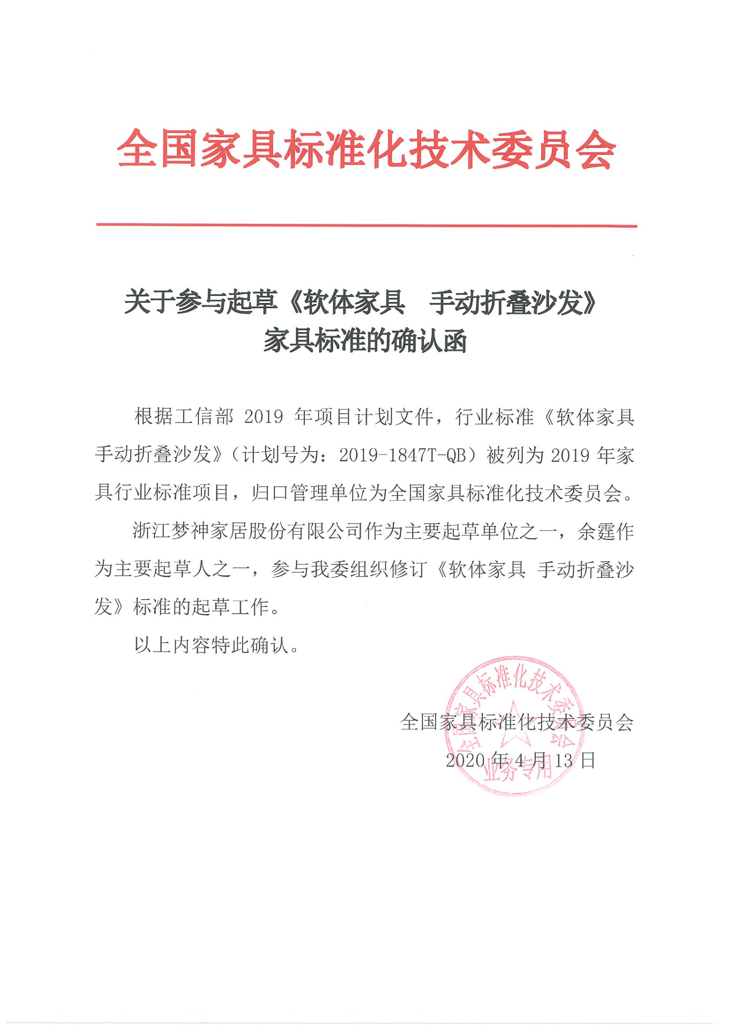 《軟體家具 手動(dòng)折疊沙發(fā)》主要起草單位